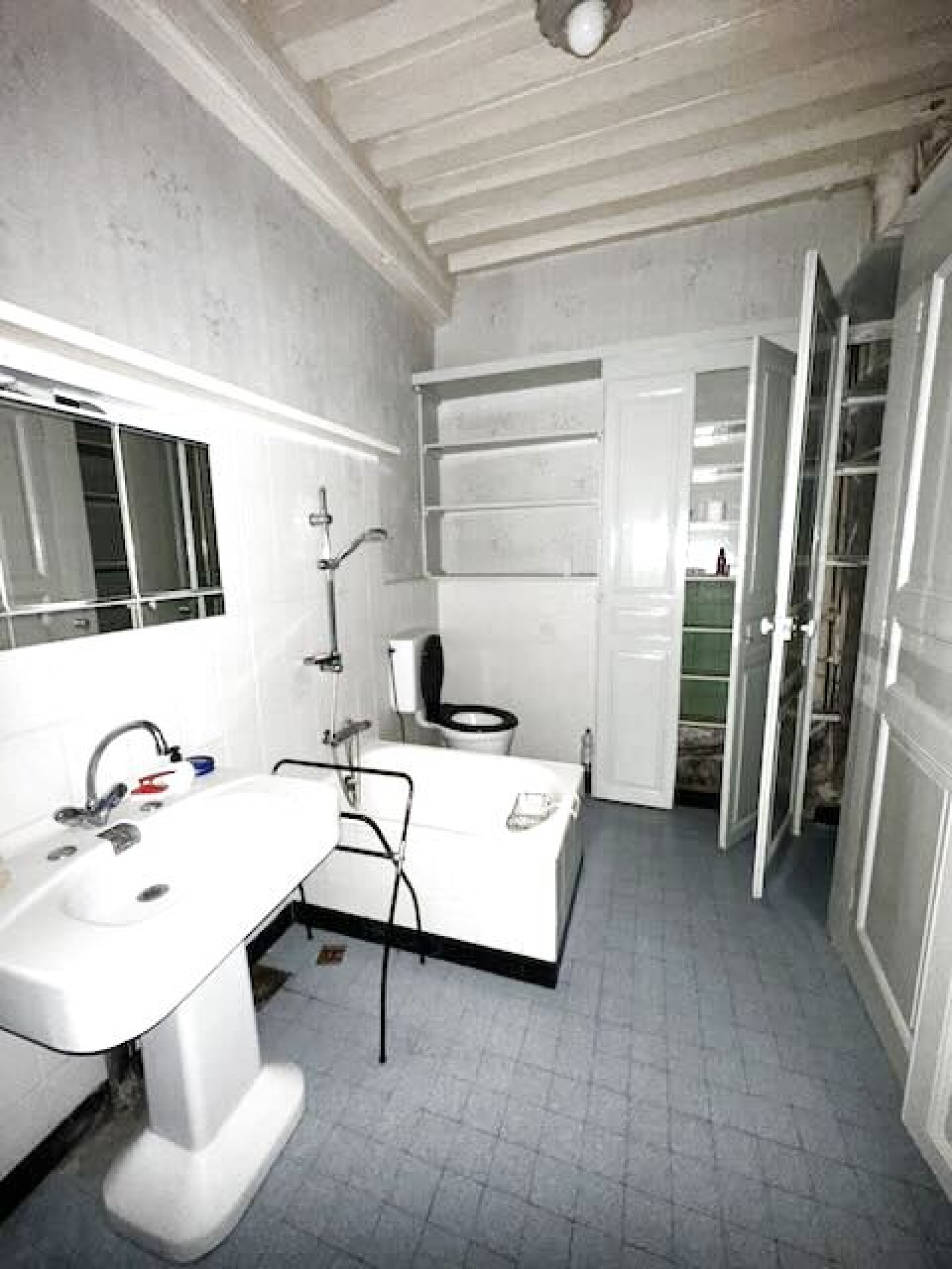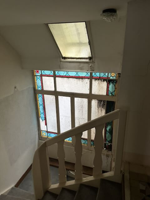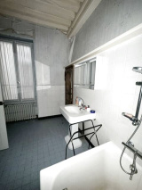2eme étage: 4 pièces, en tomettes et parquet, ancienne douche et wc.