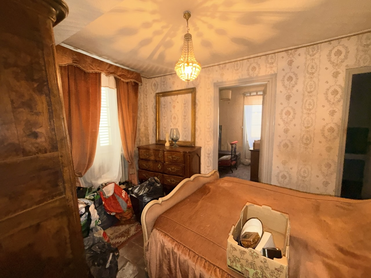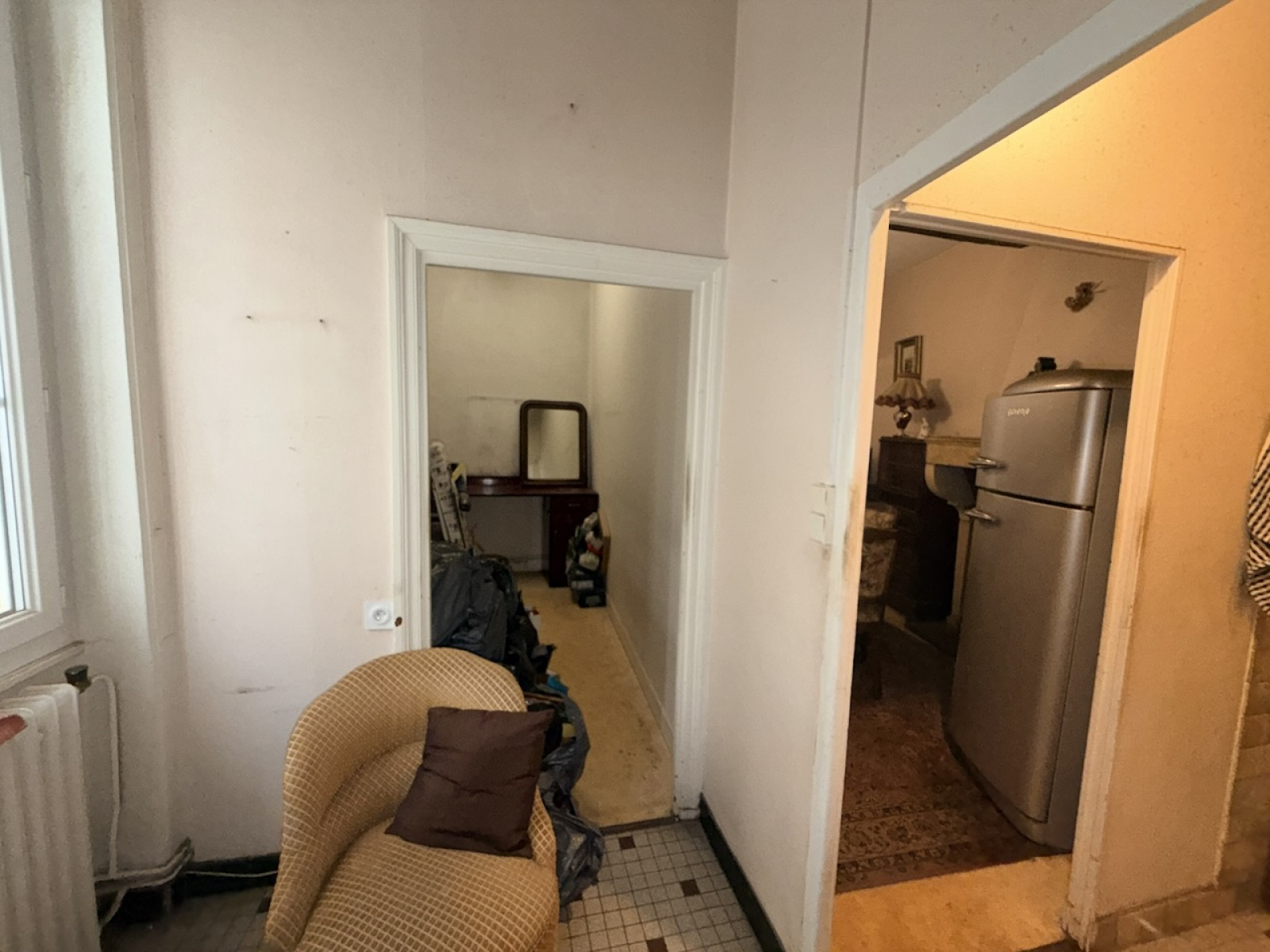 Une chambre, tomettes au sol, dressing, tomettes au sol.
