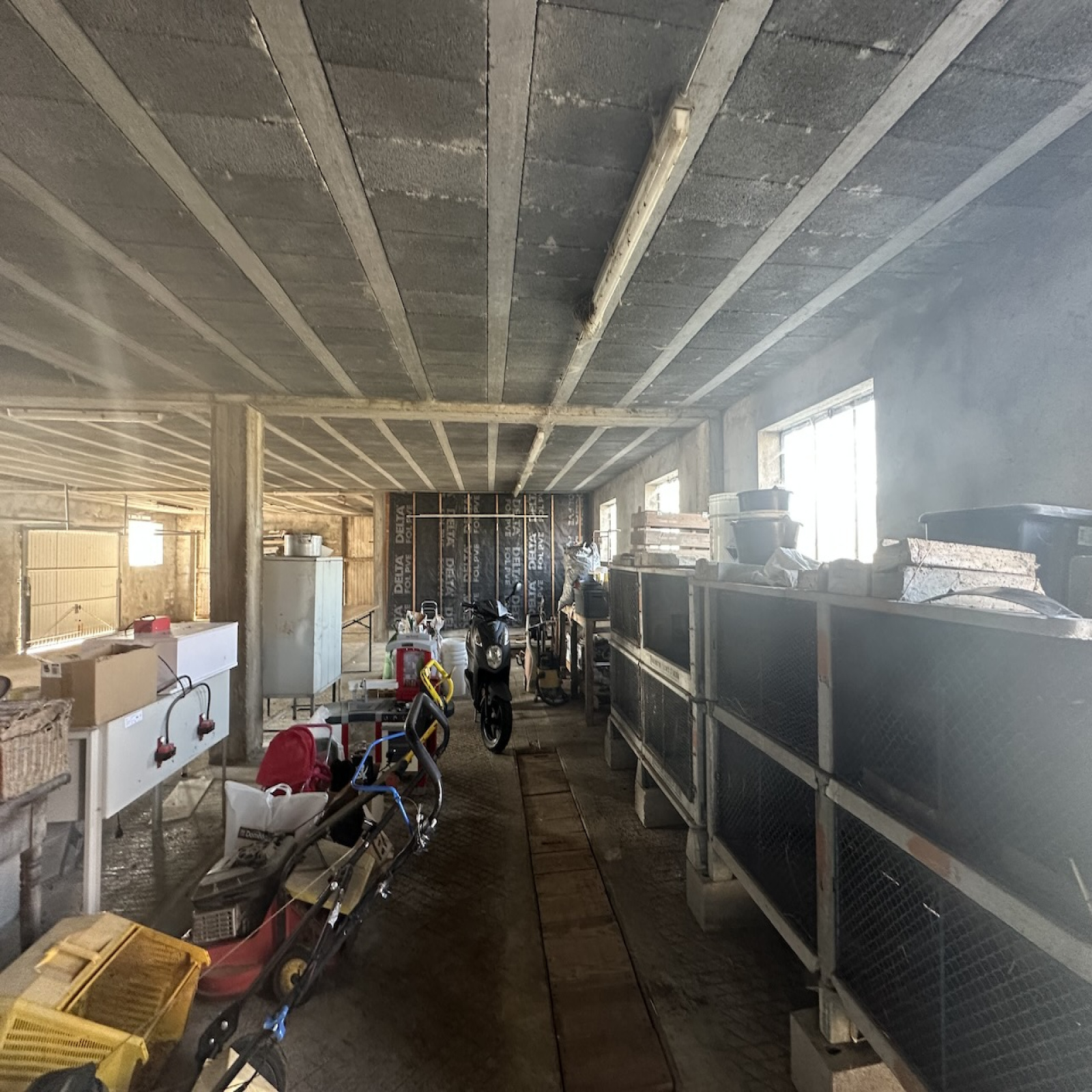 Dépendances: Un garage à vélo, 28 m2. Garage double de 200 m2 au sol, et sockage de 200 m2 à l'étage.Hangar et abris bois, ancienne grange de 30 m2 et atelier.Un puit.