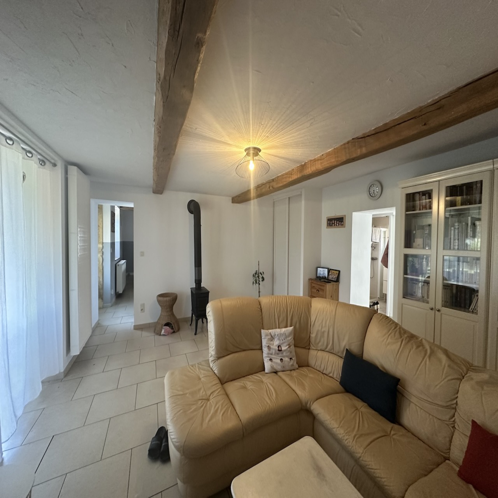 Entrée, carrelage, 9 m2.Cuisine , carrelage aménagée, 12 m2. Salle à manger, carrelage, 20 m2.Séjour, carrelage, baie vitrée, accès terrasse, conduit de cheminée gainée, 20 m2.