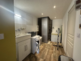 Bureau ou chambre parentale, carrelage, baie vitrée, 22 m2. Coin buanderie, Emplacement salle d'eau à terminer, 7 m2.WC, cave-cellier, salle d'eau.